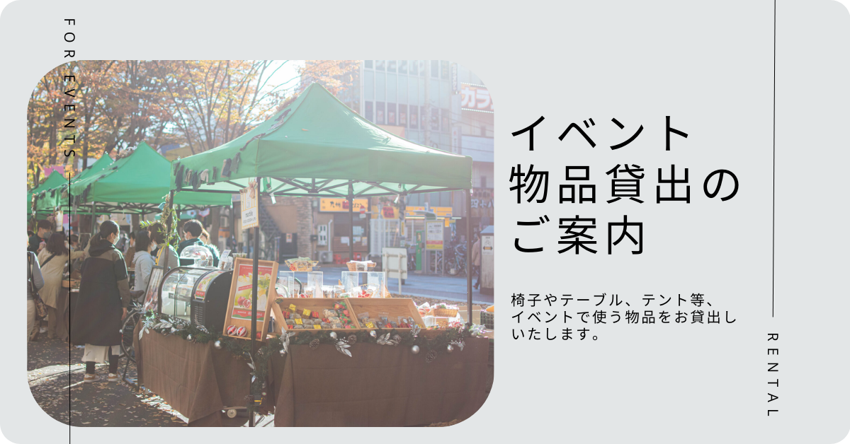 テントやテーブル、椅子など、イベントで使用する物品をお貸出することができます。