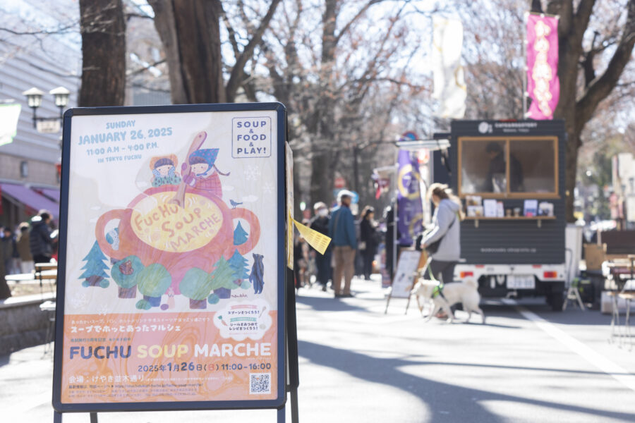 まちづくり府中では、府中市を象徴するけやき並木通りの継続的なにぎわい及び、まちを訪れた方々がまちなかで心地よく過ごせる場を創出するため、府中駅前のけやき並木通りにおいて日曜日の車両交通規制の時間帯等を活用し、車道にテーブルとイスのほかキッチンカー等を配置する取り組みである「府中ストリートテラス in けやき並木通り」を実施しています。