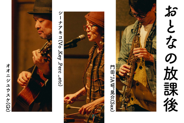 東府中COFFEA EXLIBRIS kettle 発のユニット“おとなの放課後”が今年も門田“JAW”晃介(sax)、シーナアキコ(Vo,key,Perc,etc,,)、オオニシユウスケ(Gt)の3人体制で登場。プロフェッショナルとして全国を駆け巡 る3人の幅広い音楽経験をもとに、豊かな生音とエレクトリックで実験的な試みを掛け合わせ、おとなの音遊びを繰り広げます。
