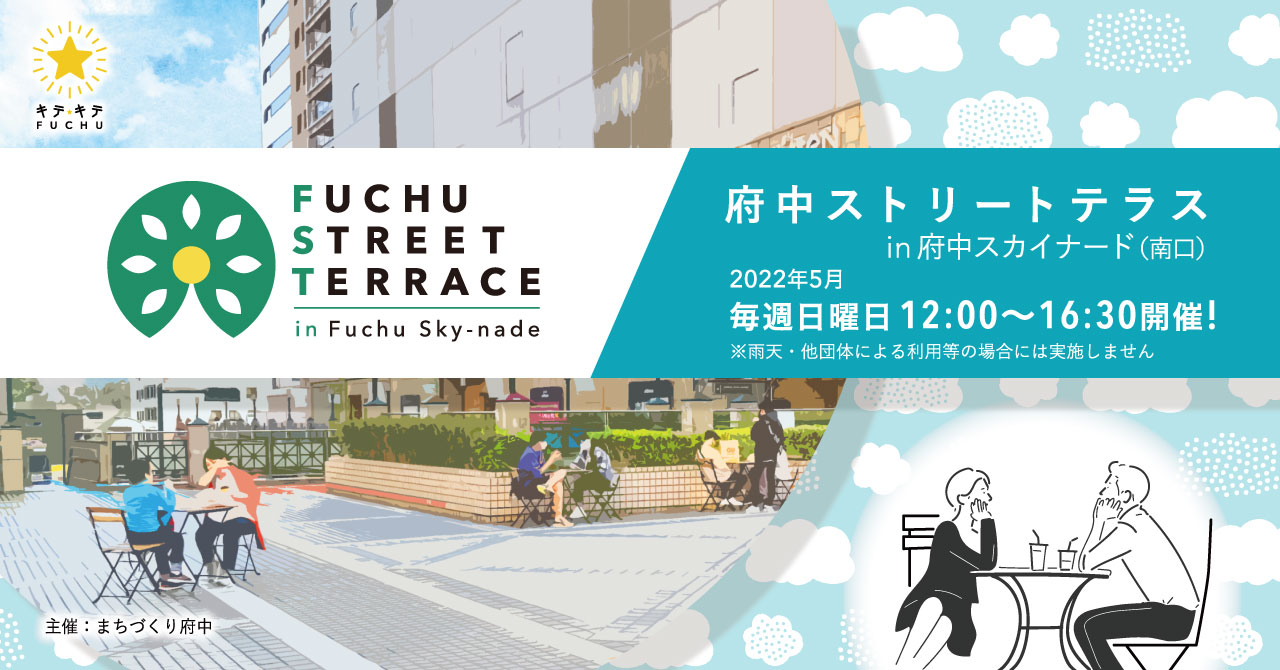 府中駅南口ペデストリアンデッキでは3月の日曜日正午~16:30まで、無料でご利用いただける椅子・テーブルを設置する「府中ストリートテラス in 府中スカイナード(南口)」も実施予定ですので併せて是非ご利用ください。(雨天中止)