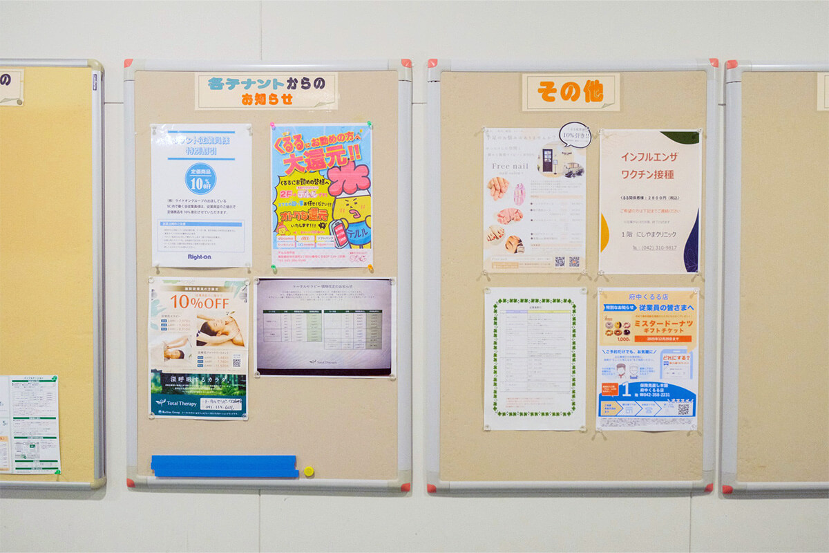 「当館には『従業員特典』があり、別のお店のサービスをスタッフ価格で利用できる仕組みがあります。例えばクリニックで予防接種が安く受けられたり、飲食店で無料のドリンクサービスがあったりと、店舗同士が協力してスタッフを支えています。面白いのは、施設側からの提案ではなく、テナントさん同士が自発的にレシート持参で割引などの独自の連携をしていることです。こうした横の繋がりこそが、くるるの最大の強みだと思います」