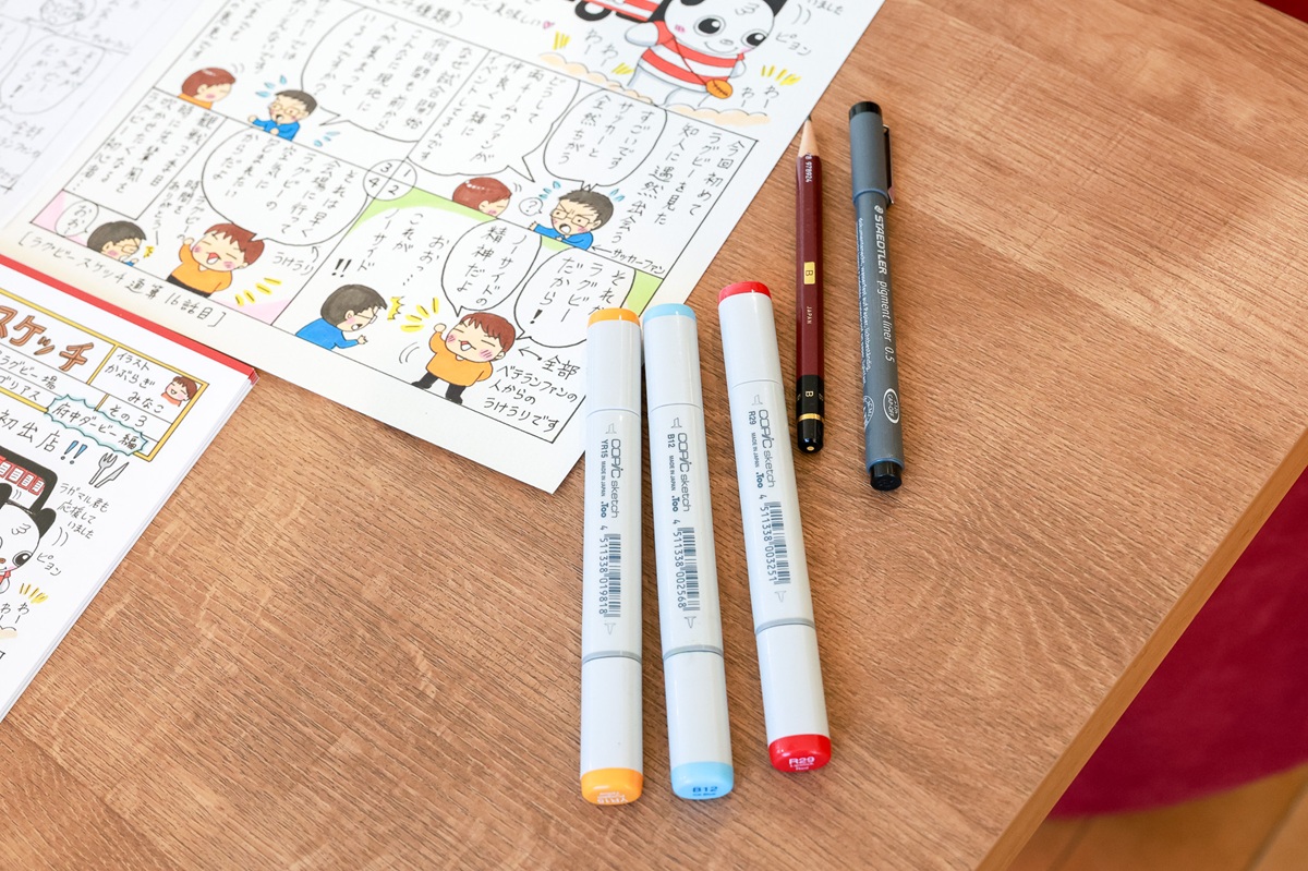府中を拠点に活動するクラブチームの依頼も舞い込んだ。ラグビー観戦記の制作だ。ラグビーは観たことがなかったが、それが武器になった。「ラグビーに精通している方の解説本はたくさんあるけれど、全く知らない人がつまずくところって違う。そこを絵で説明できたら、もっと興味を持ってもらえると思ったんです」。ルールの要点や会場での過ごし方など、ビギナー向けに分かりやすく描いたイラストルポはラグビーファンにも好評で、これから続編の制作も予定されているそう。
